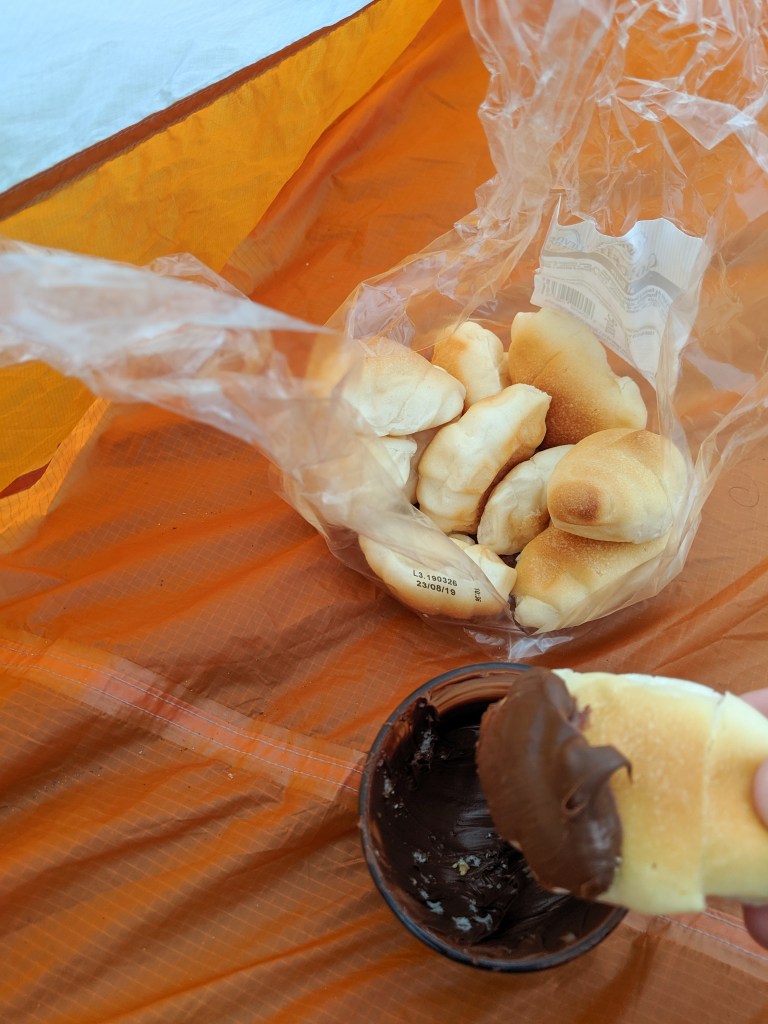 The first night of camping worked out well, providing a good night of sleep except for the 4:00 AM wake up due to a strong downpour. I fell right back to sleep, but knew I’d have to deal with a wet tent in the morning. The rain continued until 7:30 and when I sensed it coming to an end I started packing up. My breakfast was croissants and Nutella which were left over from yesterday. Once I finished eating, I loaded up my bike and was on the road by 9:30.