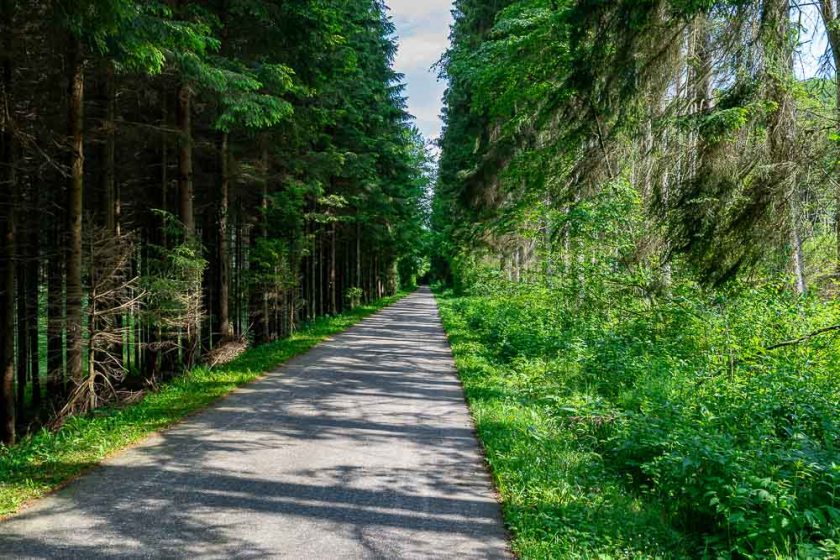 I then found myself on some nicely paved bike paths that twisted through the forest area. It was a nice change from my usual scenery but also made for difficult riding. I wasn’t gaining any elevation overall but had lots of ups and downs which tend to tire me out more than a long steady uphill would.