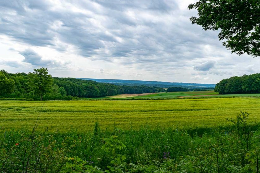I started today’s ride by walking my bike from the hostel to the center of the city. Luxembourg City is much hillier than I expected and there was no way I could pedal my loaded bike up the giant cobblestone hill. I stopped at a grocery store to pick up lunch and then headed west out of the city and into the suburbs. After 6 or 7 miles the suburbs started to turn into farmland and around mile 12, I spotted a gas station and decided to pick up some cold drinks to take with me the rest of the way. This was the first time I’ve found a good use for all my small coins paying €3.66 in exact change.