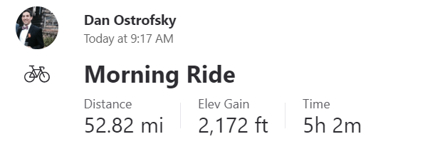 After the 5 mile incline I found myself outside of the suburbs and back into farmland. There was more construction blocking a road which forced me into a detour that added 2 miles onto the ride. I was a little annoyed about this, but the riding was flat and fast, so it didn’t cost me all that much time.