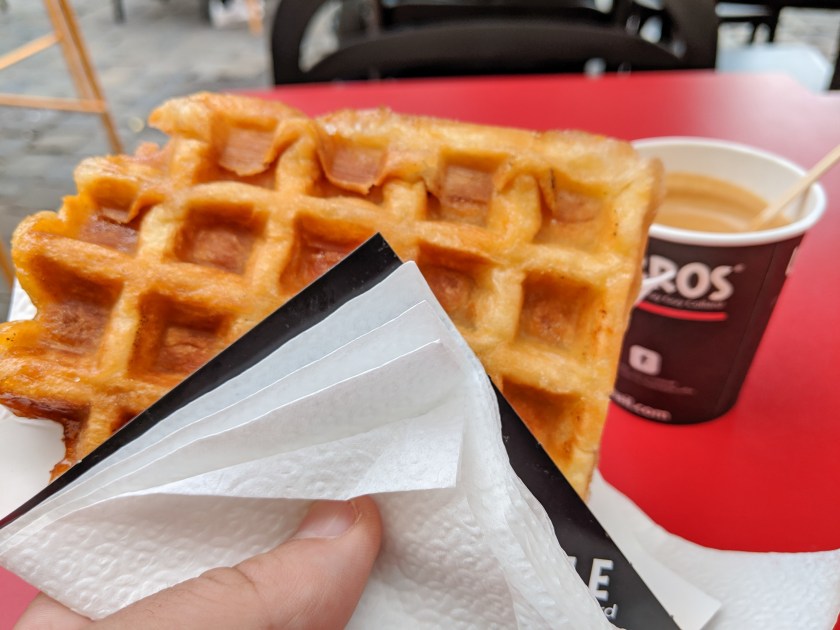 I started the day with a waffle and a coffee. I will probably do the same tomorrow. I really can’t get enough of the waffles here. After breakfast I had to go back to the reception desk for the hostel to get a new key card. My original key card was good for 3 days, but I needed it reactivated to account for the extra day I added on to my stay in Brussels.