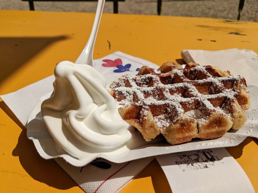 Once the basketball was over, I had enough time for a quick snack before I needed to get to the Anne Frank House. I decided on a Belgian waffle with ice cream because I’ve been craving a waffle since I left Brussels. The waffle did not live up to what I’d become accustomed to in Brussels, but the ice cream was good. I have serious plans of purchasing a waffle maker and perfecting a liege waffle recipe when I get home.
